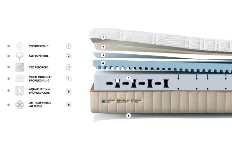 Hybrid Memory ofrece una experiencia de descanso envolvente y progresiva, sin ruidos, sin rebotes, solo adaptación. Núcleo de espuma técnica HR Aquapur® perfilada proporciona una base articulable, ligera y ergonómica. Plancha de 7 cm de viscoelástica Innogel® perfilada potencia la adaptabilidad, proporcionando una acogida suave y continua. Tejido stretch con tratamiento de hilo frío. Un colchón articulable, sin muelles y con una capacidad de respuesta silenciosa, pensado para quienes entienden el descanso como un ritual de equilibrio y sensibilidad. Además, los colchones de esta colección integran el Sistema Duo mediante el cual se pueden unir dos colchones diferentes de la esta misma serie, incluso si son de diferente confort. Elige tu descanso ideal.