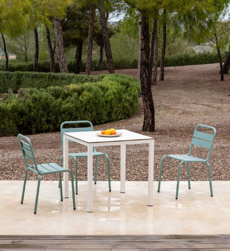 Colección fabricada acero galvanizado y lacado con polvo de poliéster. Apto para uso exterior, interior y contract. Medidas: Altura: 76cm Sobre: 70x70 / 80x80 / 90x90cm